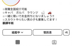 你有注意到这个IG帐号吗?这是个介绍「晚上的工作」的帐号,不管是酒店、酒吧还是旅馆会客室都可以和这个帐号联络,如果想当可以把无辜少女推入火坑的星探也OK,总之,就私讯吧〜