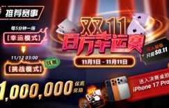 【EV扑克】推荐赛事:双11百万幸运赛进入决赛桌即赠iPhone 17 Pro Max