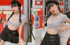 【EV女孩】加油站出沒「搞怪奶妹」!短裙爆乳露小蠻腰,手拿油槍要幫你好好加滿!
