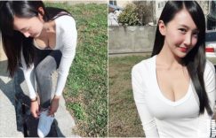 颱風天沒事千萬不要出門!但在颱風來之前一定要囤好物資的啦~各位所在的地方有放到颱風假嗎?不論風雨大小,颱風時應該不少人都會先去超市大採購一番!JKF女郎「玲奈Lena」也不例外,長相甜美肌膚白皙的她,就穿著細肩帶白色小可愛跑去超市採買,但領口實在有夠低,彎腰拿泡麵的時候兩球「白嫩雙乳」就快要溢出啦! (