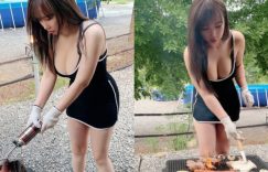 【EV女孩】露營烤肉「白皙奶妹」爆乳生火 網友:我體內的火已經被點燃
