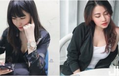 【EV女孩】對面「白皙美乳妹」低頭滑手機!領口「小露深溝」風景太美!原來是台藝大校花啊!