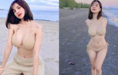 【EV女孩】好強大的泰奶!「短髮巨乳妹」海邊曬太陽,雄偉雙峰閃閃發光威力太強大!