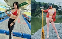 才五月初就要蓄勢待發了!為了迎接月底的端午節,怎麼能錯過滑龍舟的精彩比賽呢!尤其是這位「安安Anna」上場絕對全場暴動,穿著青天白日滿地紅的比基尼和運動褲,拿起船槳拍了幾張照片,看似早已準備好要上場的姿態,不只纖細水蛇腰很撩人,還有波濤洶湧的美乳值得觀賞! (