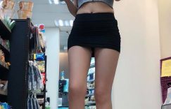 【EV女孩】由下而上視角太驚人!逛超商也能捕捉「黑暗三角洲」不科學逆天長腿好想犯罪啊!