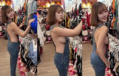 最近天氣冷,大家也越穿越多,但穿這麼厚重,每次去逛街要試穿衣服都好麻煩,但也不能因為懶得脫就不穿了吧?短髮正妹HANHAN分享了自己逛街的小短片,畫面中的她不知道是不是為了試穿方便,身上竟然只穿著一件吊帶褲,沒穿上衣的她露出了渾圓側乳。
