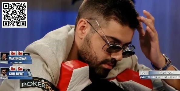 在Bedir弃牌后,Martirosian用8♦9♦在按钮位全下,Peters弃牌,Guilbert拿到了A♦K♦,但他在想了半分钟后决定弃牌。