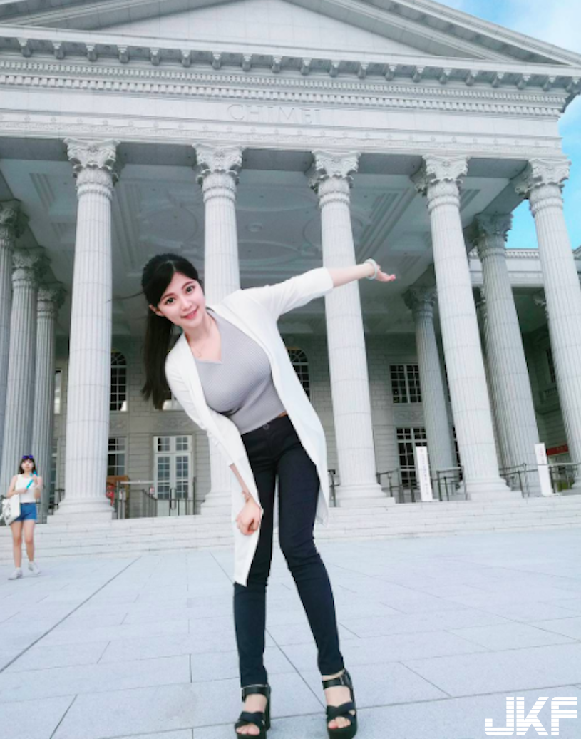 最近台南的奇美博物館前,出現了一位身材超好的正妹喔!她站在博物館前擺出俏皮姿勢,而渾圓的美乳在鏡頭前呼之欲出,整個好兇猛啊~~快把衣服撐爆了呢!