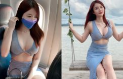 【EV女孩】「白皙巨乳妹」超狂洋裝搭飛機,「美胸細腰」不怕著涼,白嫩美腿也大方秀出!
