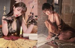 原來古典美女也沒有多保守!眼前身材誘人的妹子就是米亞亞,穿著貼身的緹花旗袍在桌前拿起毛筆書寫,氣質的氛圍和桌上那雙呼之欲出的火辣美乳有些違和,尤其媚氣的雙眼搭上小巧的的櫻桃嘴,古色古香的女人味讓人無法抗拒,就想穿越時空來到她身邊寵幸一波! (