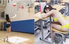 【EV女孩】籃球場出現「熱褲正妹」投籃背影!只穿比基尼就在教室睡著了!身材超好同學受不了!