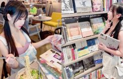 閒閒沒事建議大家都去書店消磨時間,可以遇到很多優質的妹子!像這位綁著可愛雙馬尾,穿著連身牛仔短裙和爆乳上衣的正妹「又又」,光是在書架前徘徊就有夠吸睛~轉到正面更是瞬間被她帶出來一起逛書店的長輩嚇到,忍不住都想起立敬禮了啊。 (